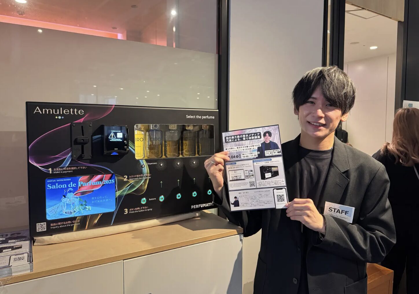 現在は、日本初となる香水スプレー自動販売機の導入を進め、百貨店や商業施設での展開を目指しています。