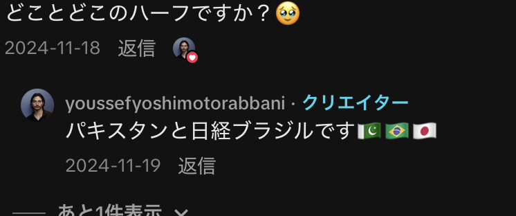 勇世歩さんのTikTokでコメントにご本人が「パキスタンと日経ブラジルです」と返していました。