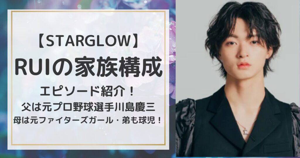 SKY-HIさんプロデュースのオーディション『THE LAST PIECE(ラスピ)』から、新たに STARGLOW(スターグロウ) が結成されました! メンバーの RUI(ルイ)さん の家族は、まさに“野球一家”。 お父さんはプロ野球界で名を馳せる川島慶三さん、お母さんは元...