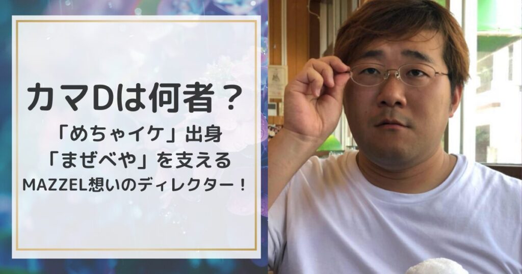 MAZZELのYouTubeチャンネル通称まぜべやの中で度々登場する「カマD」とは一体何者なのか気になっている方も多いようです。 今回は、そんな「カマD」は一体何者なのか?そして彼がまぜべややMAZZELに向けて注いでいる想いについてまとめてみました。 ɛ...