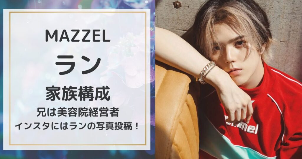 MAZZELのメンバーとして活躍するランさんは、圧倒的なダンススキルと表現力で多くのファンを魅了しています。 そんなランさんがこれまで歩んできた道のりには、常に家族の存在と温かい支えがありました。 この記事では、ランさんの家族構成や、お兄さん・... -