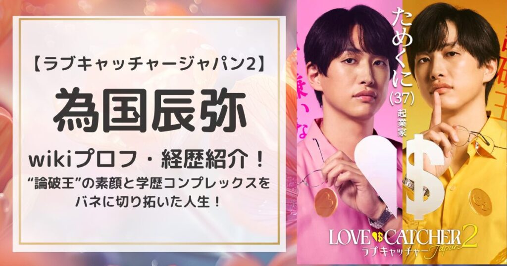 【ラブキャッチャージャパン2】為国辰弥のwikiプロフ・経歴紹介!“論破王”の素顔と学歴コンプレックスをバネに切り拓いた人生!