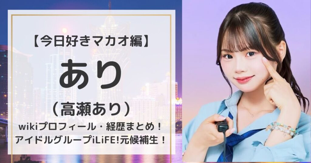 【今日好きマカオ編】あり(高瀬あり)のwikiプロフィール・経歴まとめ! アイドルグループiLiFE!元候補生!