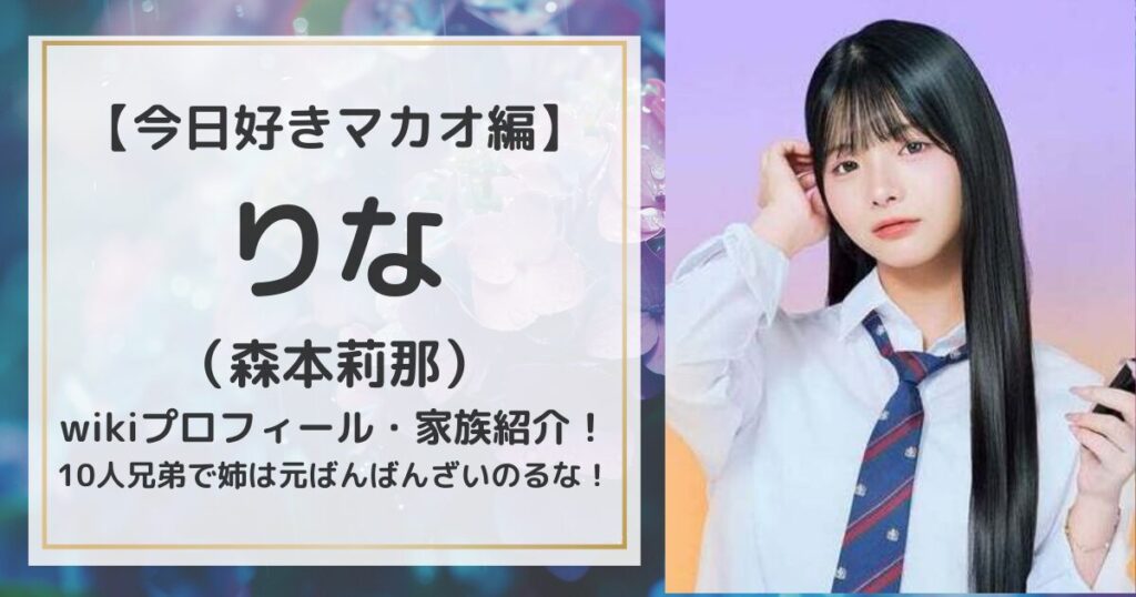 【今日好きマカオ編】りな(森本莉那)のwikiプロフィール・家族紹介!10人兄弟で姉は元ばんばんざいのるな!