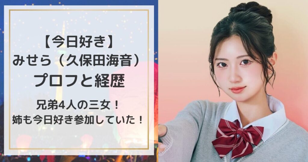 【今日好き】みせら(久保田海音)のプロフと経歴!兄弟4人の三女!姉も今日好き参加していた!