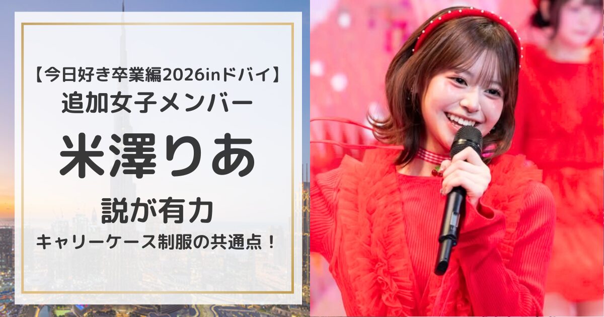 もし本当に参加しているとすれば、「今日、好きになりました。卒業編2026 in ドバイ」でどんな恋模様を見せてくれるのか、ますます目が離せません。