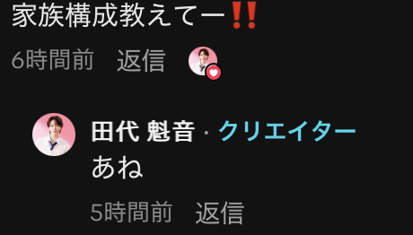 TikTokのコメント欄で「家族構成教えてー!!」という質問に対して、「あね」と返信していたことから、その存在がうかがえます。
