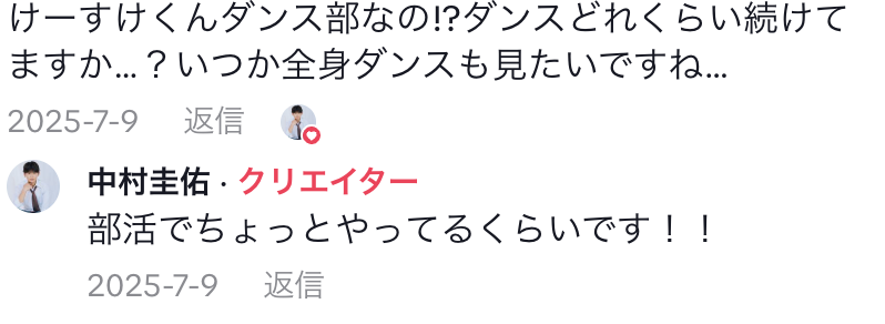 | 部活 | 高校:ダンス部 中学:野球部 |