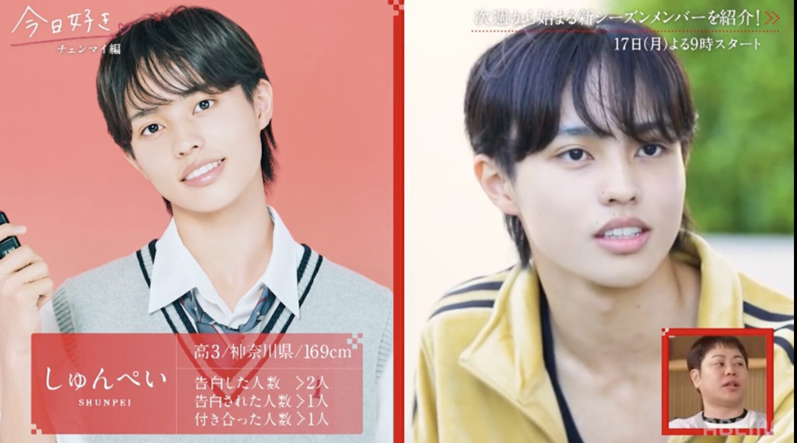 しゅんぺいさんは、男子ミスターコンにエントリー経験があり、現在「今日好き。チェンマイ編」に出演予定です。
