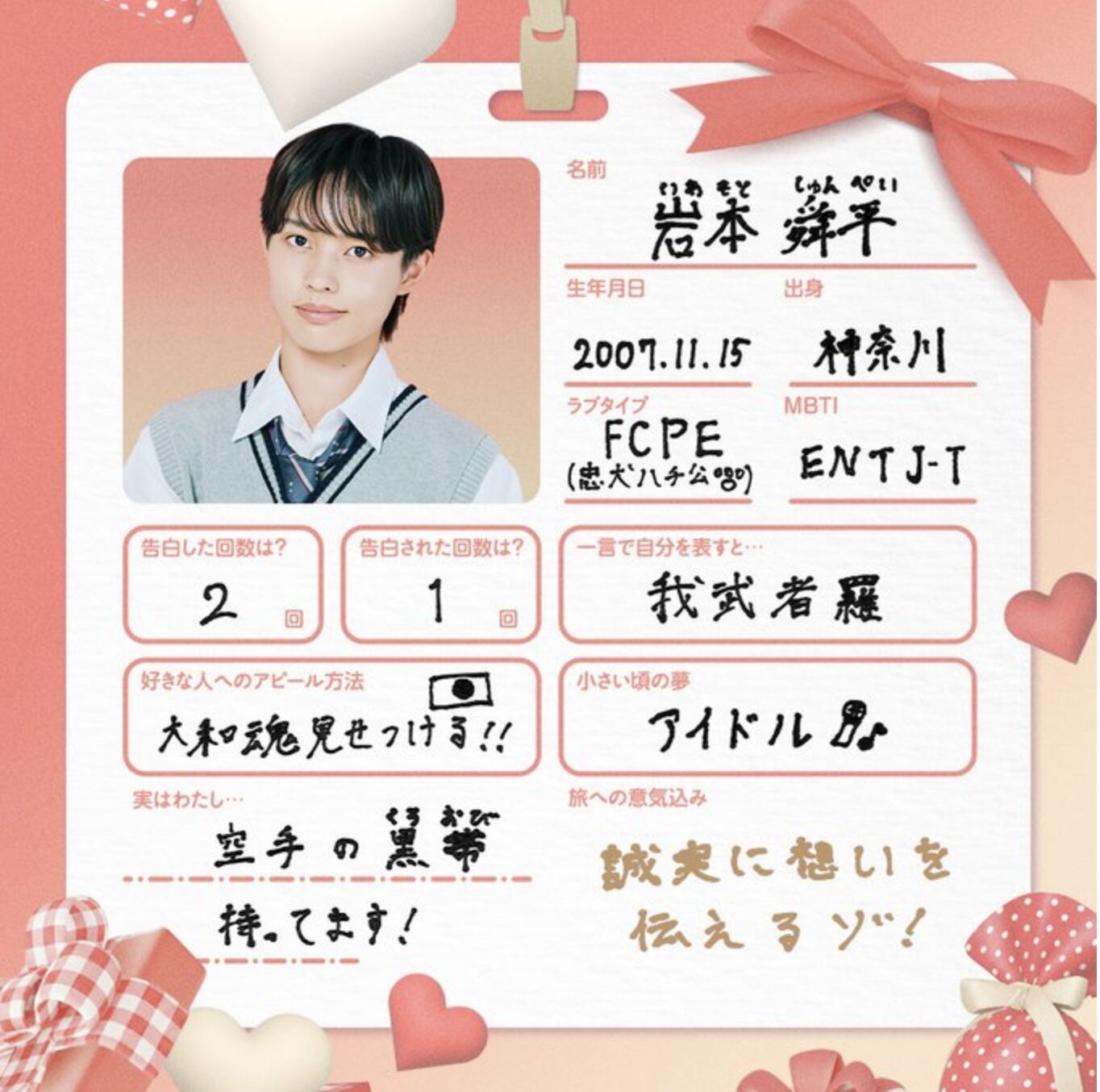 ・男子高生ミスターコン2024の関東エリア候補者としてエントリー経験があります。