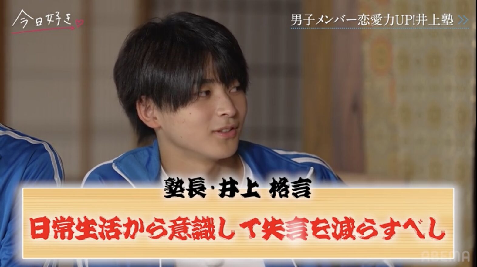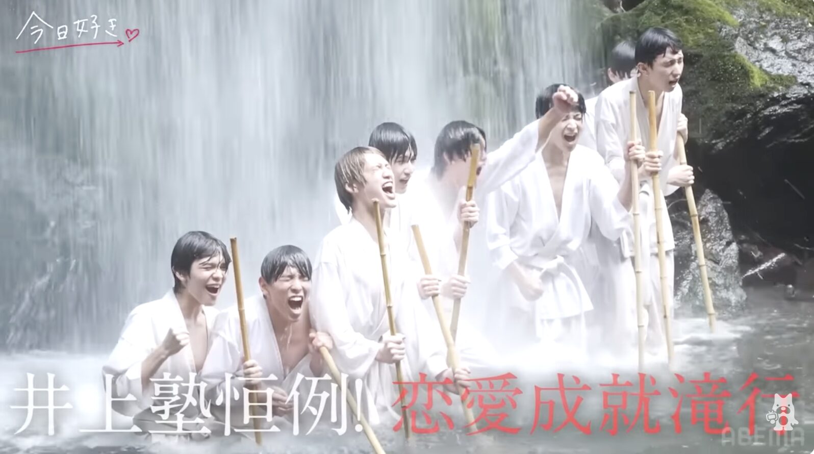 2025年7月、今日好きの旅で、成立できなかった男子メンバーたちに、ノンスタイル井上さんによる「井上塾」で、今日好き恒例の恋愛成就滝行が行われました。