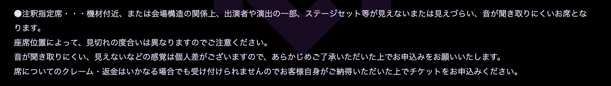 ・今回のローチケ先行では、注釈指定席のみの取り扱いとなります。