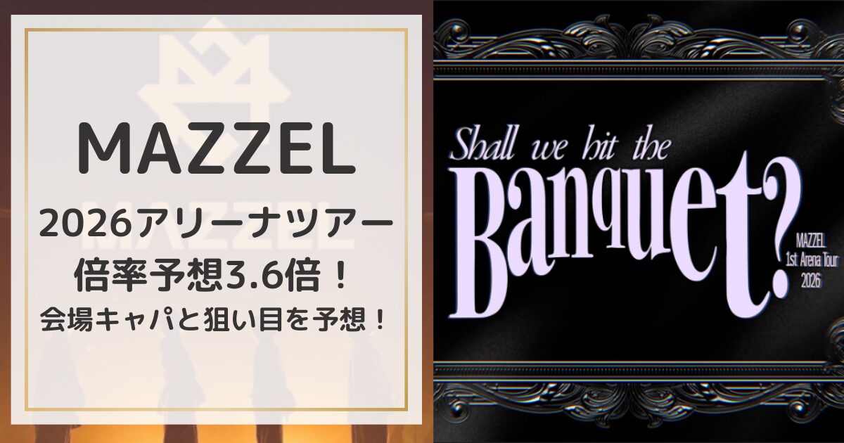 今回は、MAZZEL初の全国アリーナツアー「MAZZEL 1st ARENA TOUR 2026 “Shall we hit the Banquet?”」について、チケット倍率の目安や会場キャパシティ、狙い目となりそうな公演条件を中心に整理してきました。