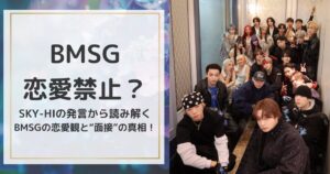 BMSGは恋愛禁止?SKY-HIの発言から読み解くBMSGの恋愛観と“面接”の真相! 「アイドル=恋愛禁止」というイメージは、これまでさまざまな場面で語られてきました。 そのため、BMSGを応援しているファンの中にも「BMSGのアーティストも恋愛は禁止...