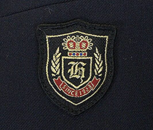 さらに、リボン部分に記された「SINCE 1923」という文字も共通しています。堀越高等学校は1923年(大正12年)創立のため、この表記とも合致します。