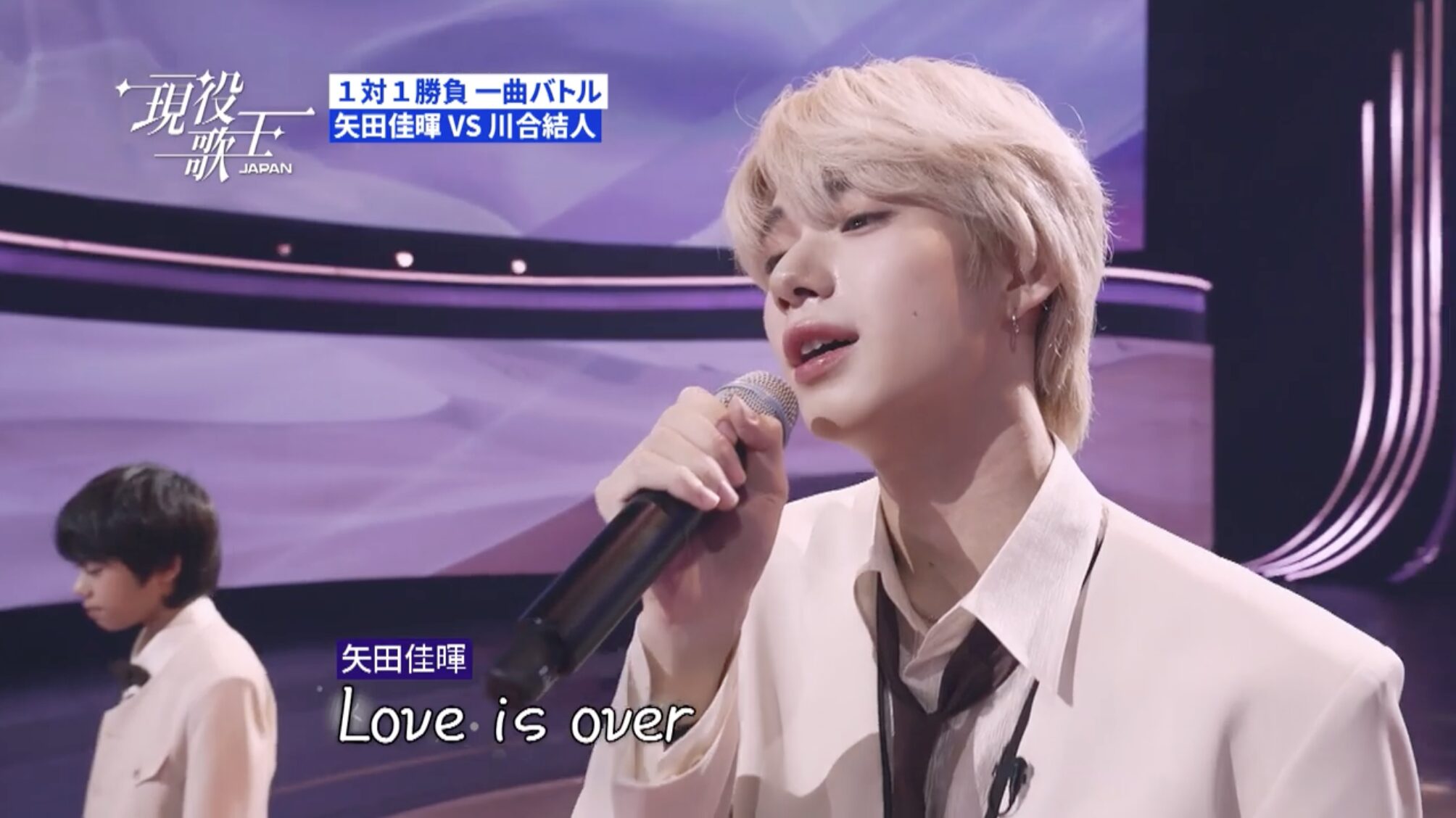 本線第一次戦では、矢田さんは中学2年生の河合結人さんと一対一の一曲勝負バトルで欧陽菲菲さんの「ラヴ・イズ・オーヴァー」をデュエットで歌い上げました。
