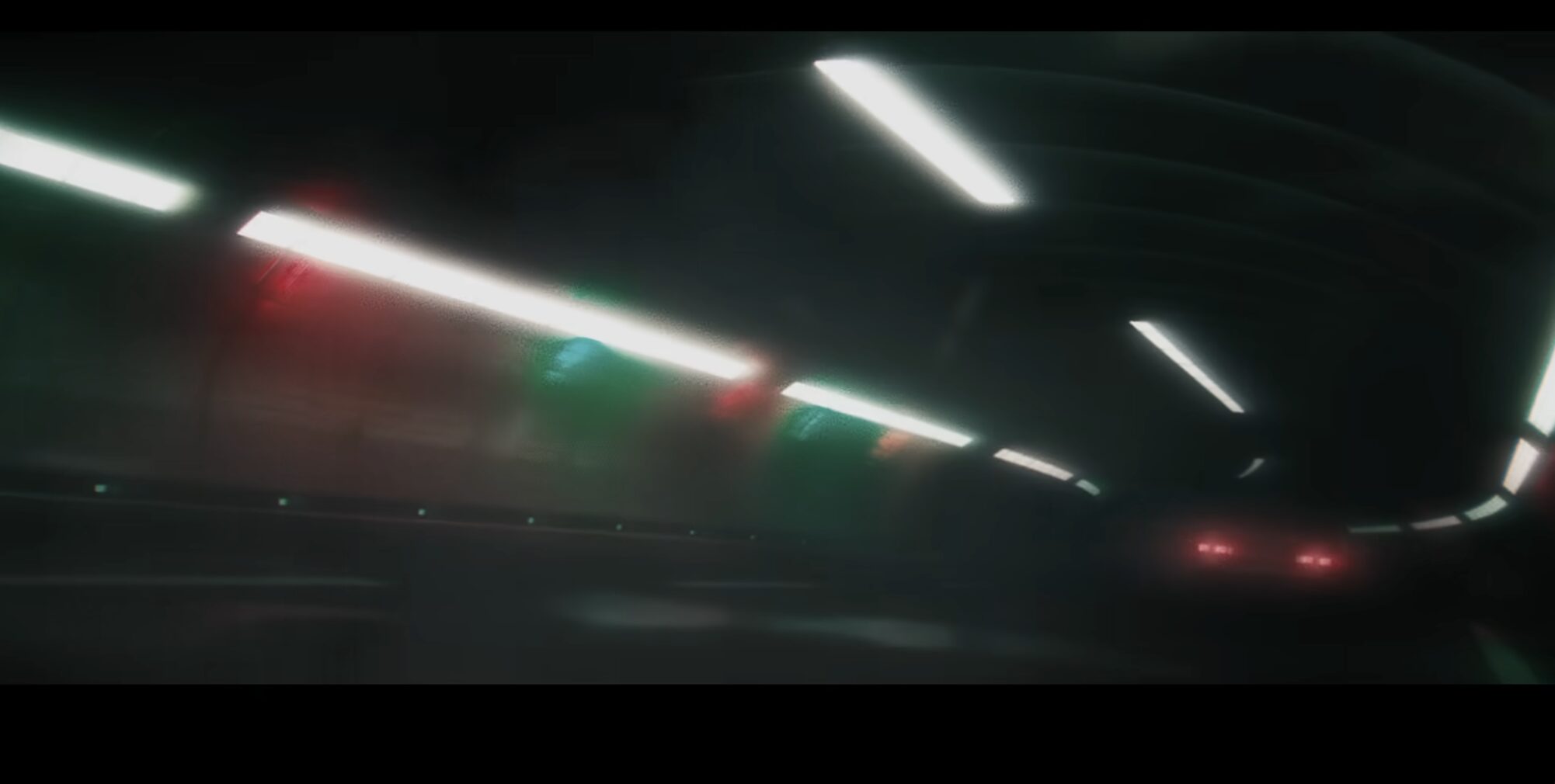 TAIKIさんが猛スピードで車を走らせるトンネル内では、赤(止まれ)と緑(進め)のライトが交互に点灯しています。
