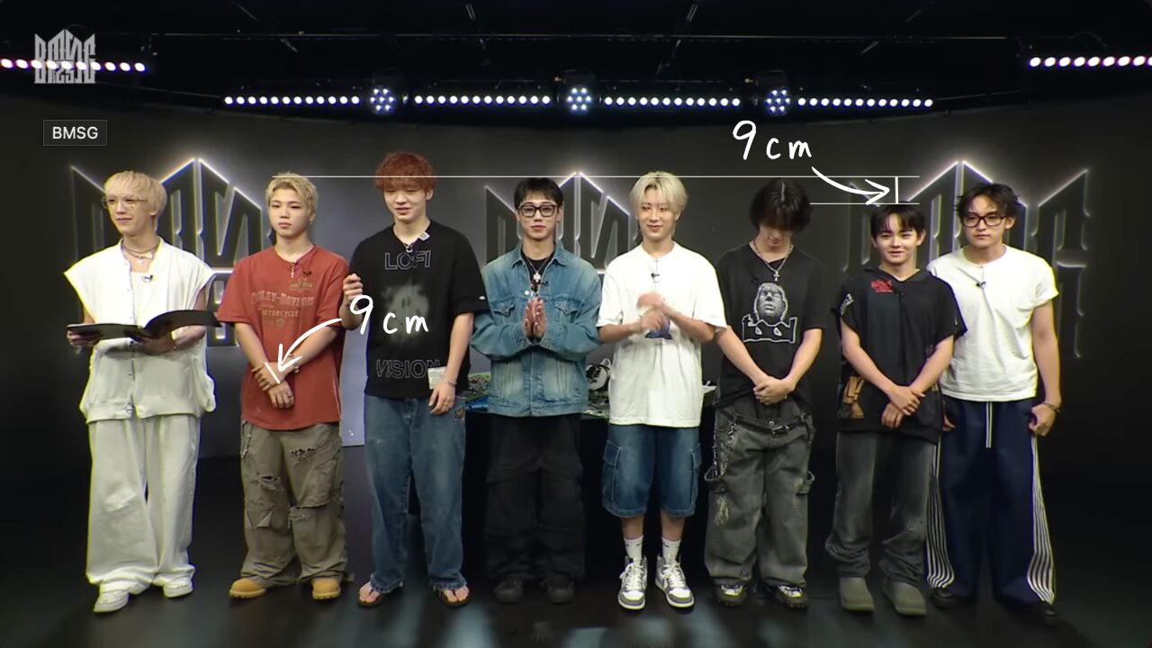 下の画像を比較したところ、SHUNTOさんの「手幅+親指」の長さ(約9cm)が、ちょうどTAIKIさんとSHUNTOさんの身長差に相当していることがわかりました。
